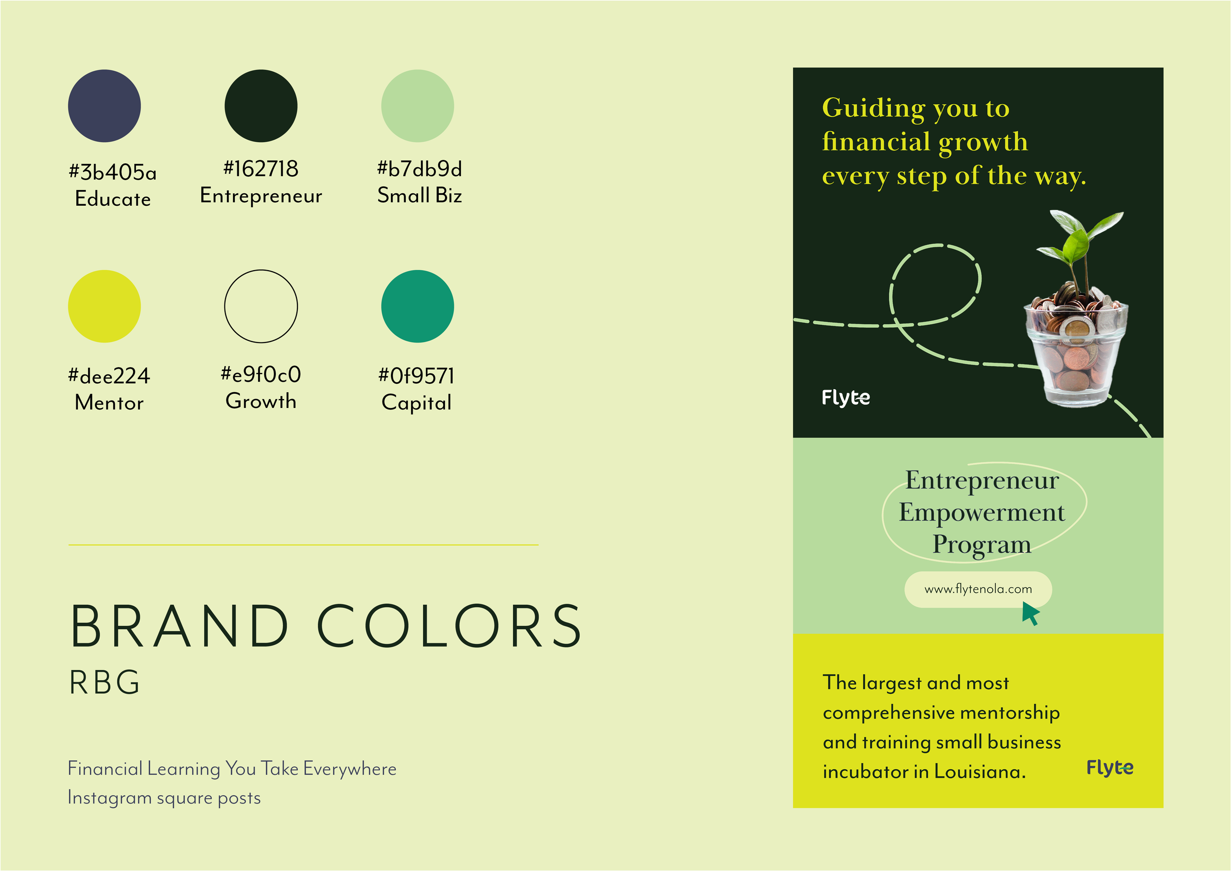 FLYTE BrandingClick the arrows to view the photos in the slideshow. I created a brand package for local nonprofit Financial Learning You Take Everywhere. This package includes a logo, typography, color palette, social media posts, and business cards. Slide 1 Slide 1 (current slide) Slide 2 Slide 2 (current slide) Slide 3 Slide 3 (current slide) Slide 4 Slide 4 (current slide) Slide 5 Slide 5 (current slide)